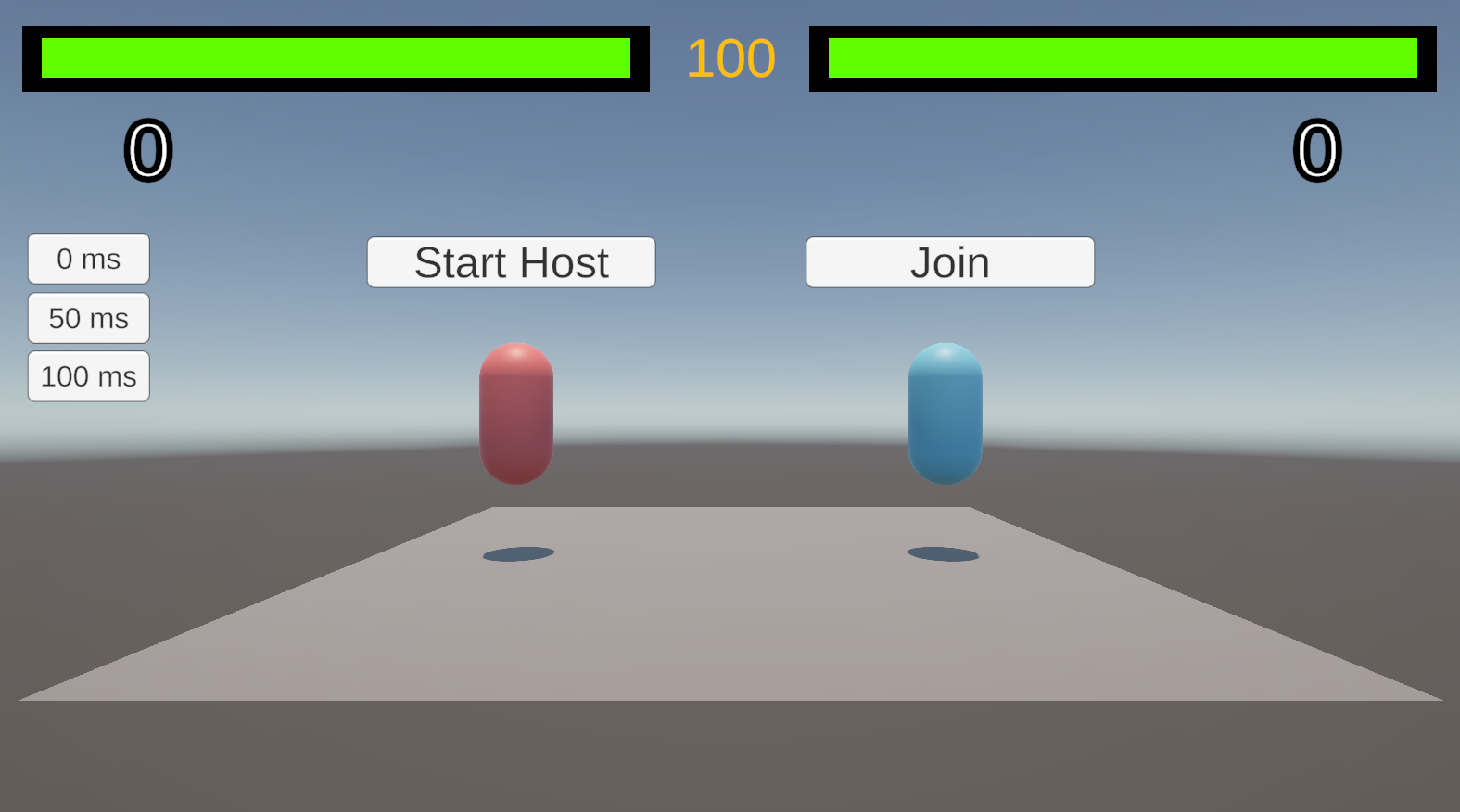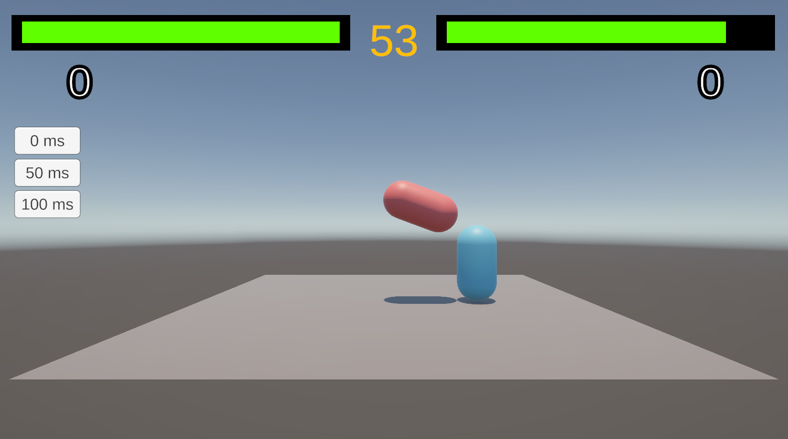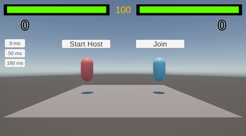 use the debug buttons on the left to artificially increase the ping to see rollback in action